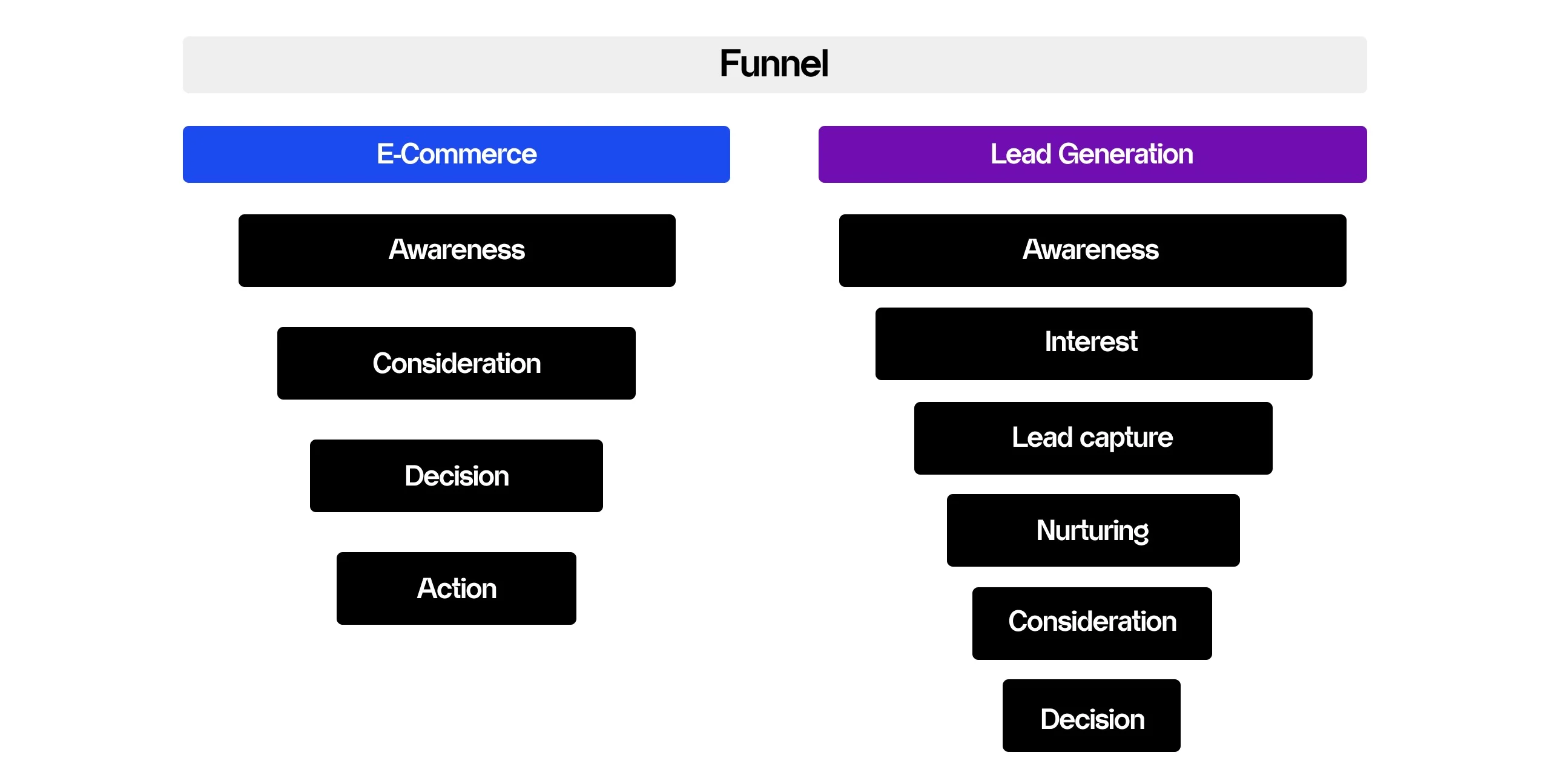 For lead generation, the funnel is longer and involves more steps: